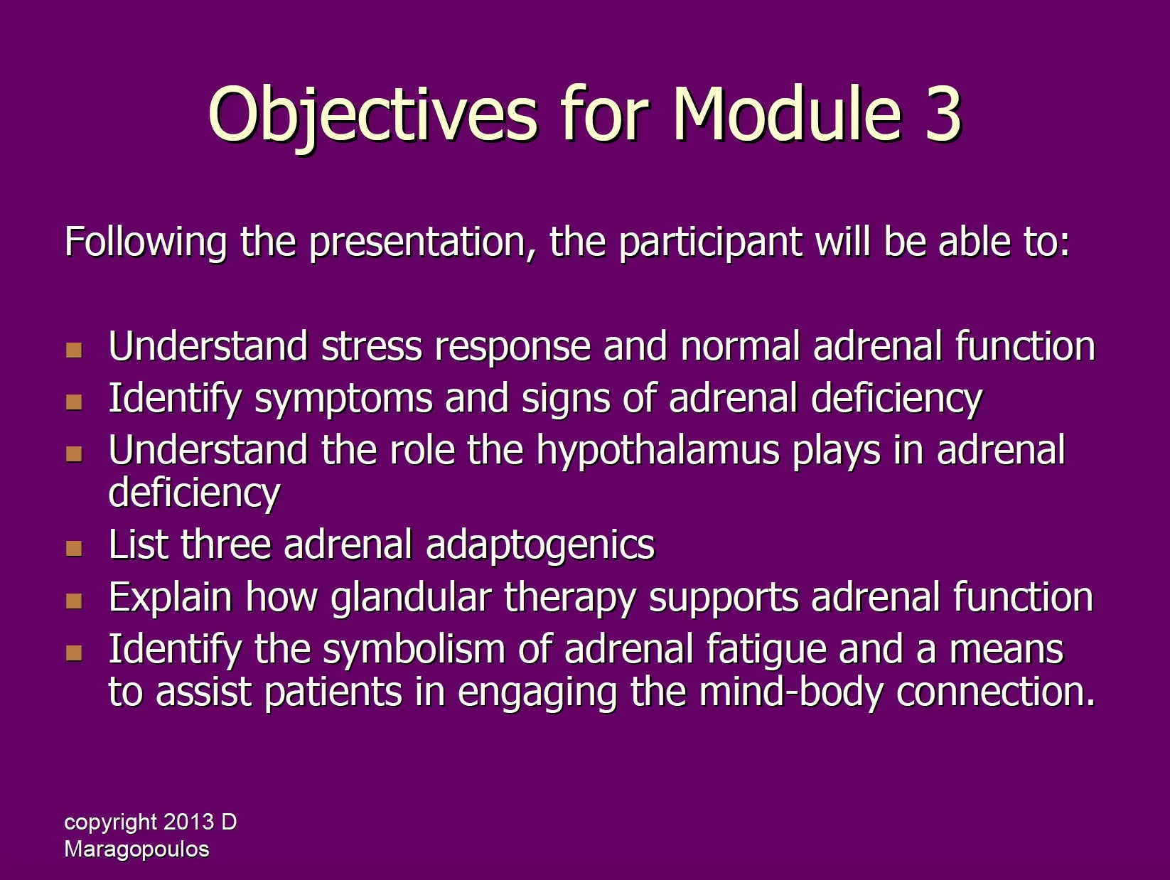 Module 3 — Third Chakra: Adrenal function – insufficiency, fatigue, stress related disorders and how to balance our sacred power.